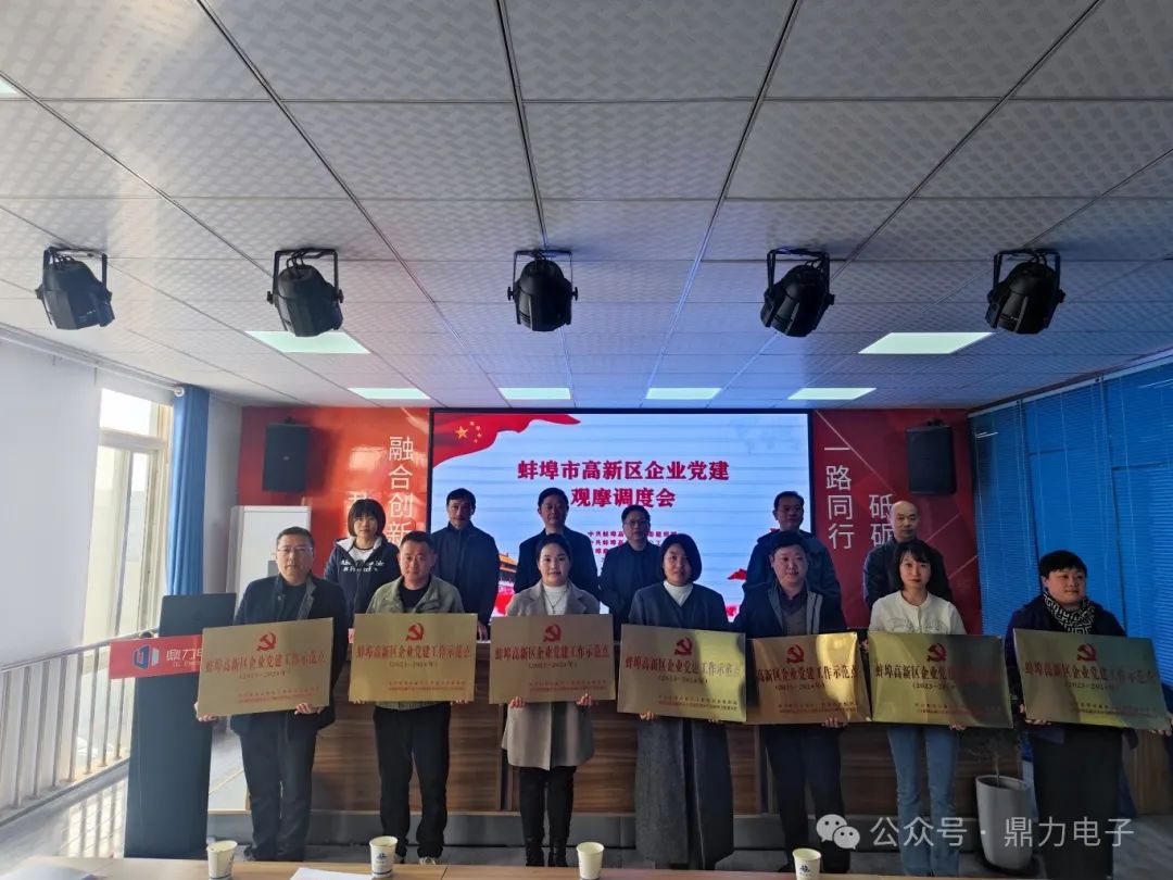 2024年3月28日下午三點,在蚌埠鼎力電子科技有限公司會議室召開蚌埠高新區(qū)企業(yè)黨建觀摩調(diào)度會,會議由張躍江書記主持,會議議程總共分為六個部分:鼎力電子黨支部匯報黨建工作開展情況;全區(qū)黨建工作示范點命名文件并授牌;區(qū)非公辦解讀黨建共建“七個一”工作要求;黨建指導(dǎo)組組長匯報工作開展情況;13個企業(yè)黨建工作示范點交流發(fā)言;會議總結(jié)點評。